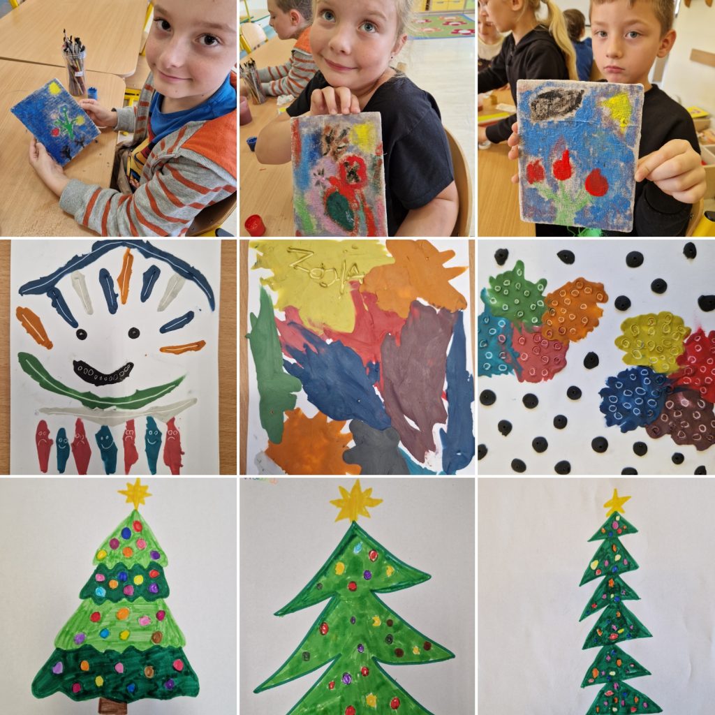 - grudzień (świąteczna choinka, malowanie flamastrami),