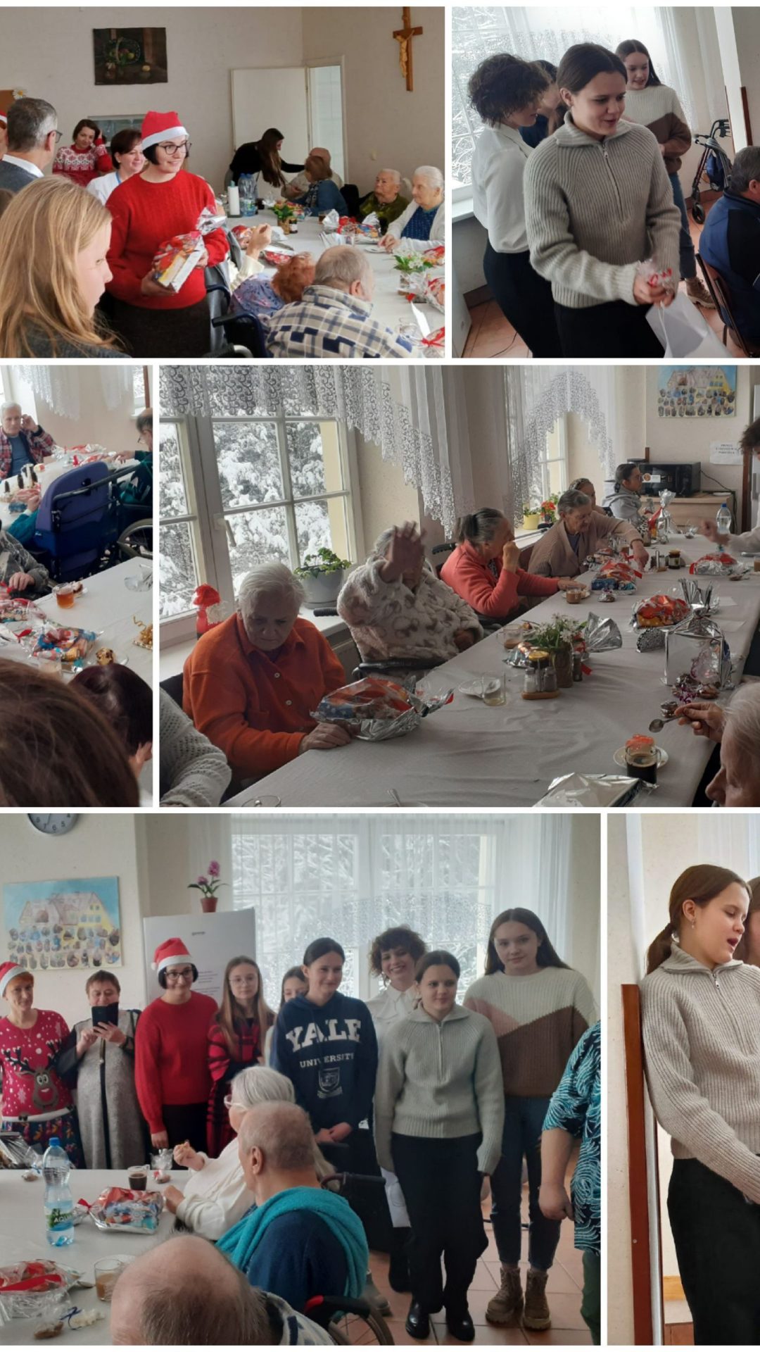 W niedzielę 3 grudnia 2023r. wraz z Wolontariuszami z naszej szkoły mieliśmy zaszczyt gościć w Domu Pomocy Społecznej w Rabie Wyżnej, by choć przez krótką chwilę towarzyszyć podopiecznym tam zamieszkującym. Spotkaniu towarzyszyły radość, serdeczność i wzajemna życzliwość. Wspólny śpiew, w który z przyjemnością i zaangażowaniem włączali się podopieczni sprawił im wiele radości i wywołał uśmiech na twarzy a może i w niejednym oku zakręciła się przysłowiowa „łezka”. Mieliśmy okazję wręczyć mieszkańcom małe upominki w postaci słodkich pierniczków i ozdób bożonarodzeniowych, będących wyrazem pamięci dzieci i młodzieży naszej szkoły o podopiecznych DPS-u. Cieszymy się również z obecności wśród Wolontariuszy- naszych absolwentów, którzy sami przed laty działali w szkolnym Wolontariacie a dzisiaj przybyli wraz z nami, by spotkać się przy wspólnym stole.