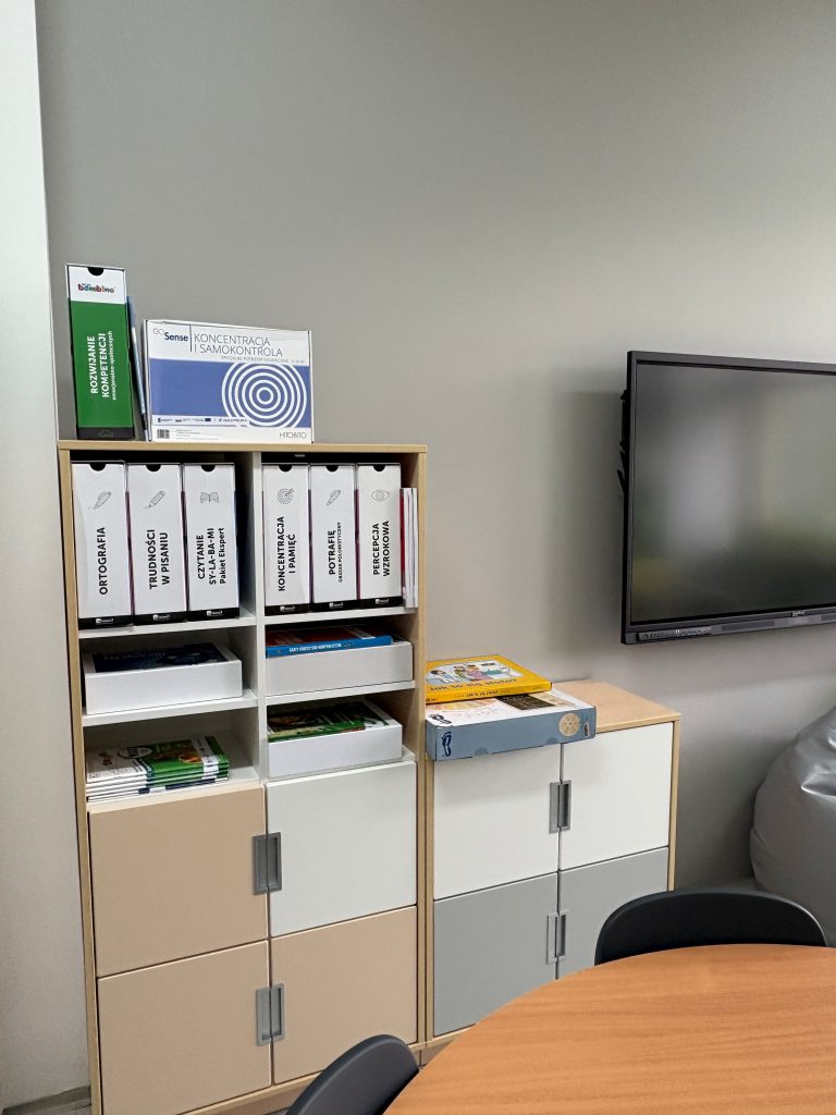Z radością informujemy, że w budynku nr 65 naszej szkoły powstał nowy, w pełni wyposażony gabinet do zajęć indywidualnych z uczniami klas IV–VIII. To nowoczesna i komfortowa przestrzeń, w której nauczyciele i specjaliści mogą prowadzić zajęcia wspierające rozwój uczniów.