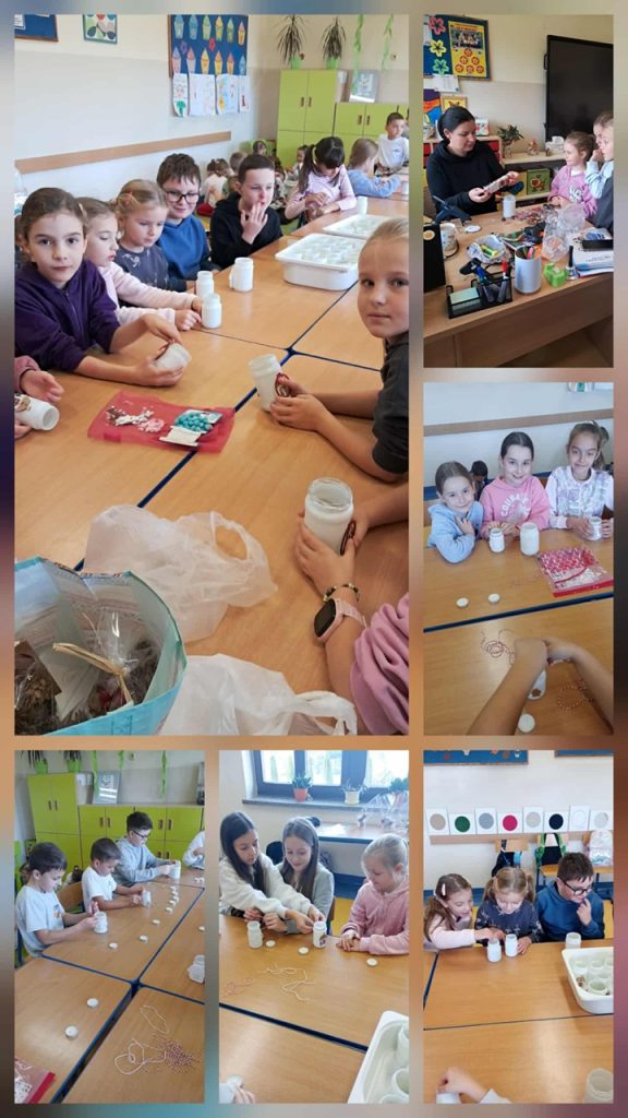 W naszej szkole odbyły się wyjątkowe warsztaty, podczas których uczniowie z klasy 3b i 0b wspólnie przygotowywali upominki na szkolny kiermasz. Spotkanie miało nie tylko charakter twórczy, ale także integracyjny – starsze dzieci chętnie pomagały młodszym, dzieląc się swoimi pomysłami i umiejętnościami. Podczas zajęć panowała wspaniała, radosna atmosfera. Dzieci z zapałem tworzyły ozdoby i drobne prezenty, ucząc się współpracy, cierpliwości i wzajemnego wsparcia. Trzecioklasiści okazali się świetnymi opiekunami i przewodnikami dla swoich młodszych kolegów z oddziału przedszkolnego. Efekty wspólnej pracy były zachwycające – kolorowe, pełne pomysłowości i serca upominki, które na pewno przyciągną uwagę podczas kiermaszu. Wspólne warsztaty pokazały, jak wiele radości może dać współpraca i wspólne działania na szczytny cel.