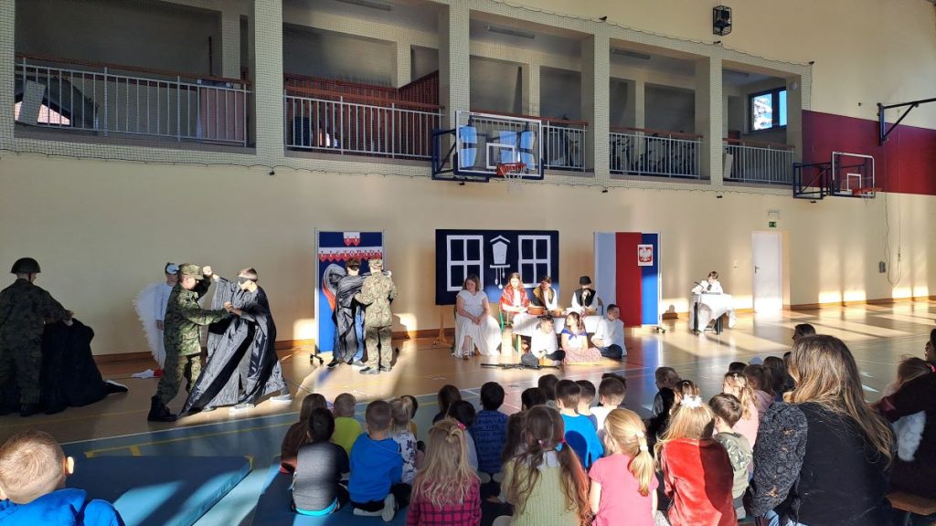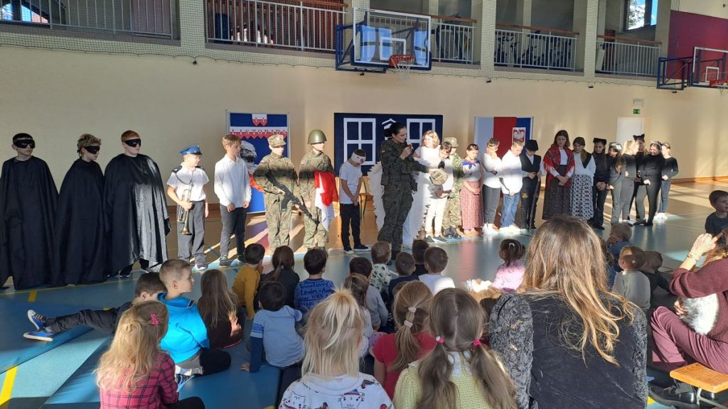 W piątek 28 listopada naszą szkołę odwiedziły dzieci z Przedszkola Gminnego w Rabie Wyżnej, aby obejrzeć spektakl pt. ,,Pisk Białego Orła’’ przygotowany przez uczniów klas IV wraz z wychowawczyniami. Dla najmłodszych była to nie tylko wyjątkowa lekcja historii, lecz także pełne emocji spotkanie z patriotycznymi tradycjami.