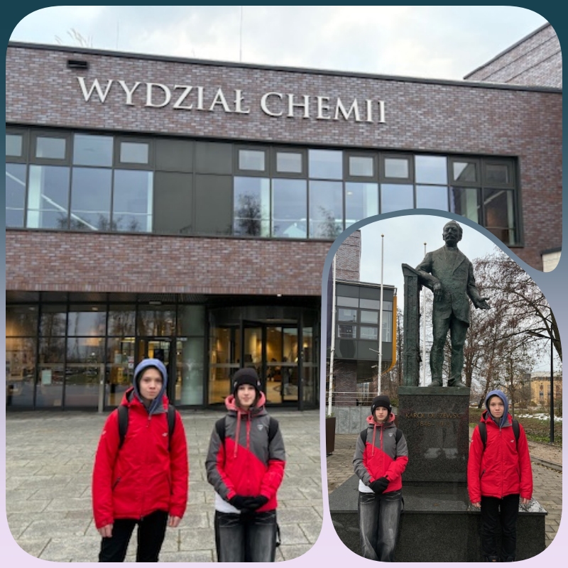 W dniu 27 listopada 2025 roku dwoje uczniów klasy 7a naszej szkoły: Milena Budna i Szczepan Franczyk uczestniczyło w zajęciach warsztatowych i laboratoryjnych organizowanych w ramach II etapu konkursu „PLUS RATIO QUAM VIS – Nauka Zmienia Świat. Karol Olszewski i Jego Dokonania”. Wyjazd był niezwykle ciekawy, pełen inspirujących spotkań z nauką i dostarczył uczniom wielu nowych informacji.