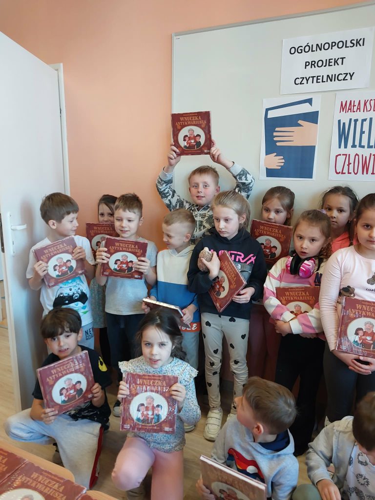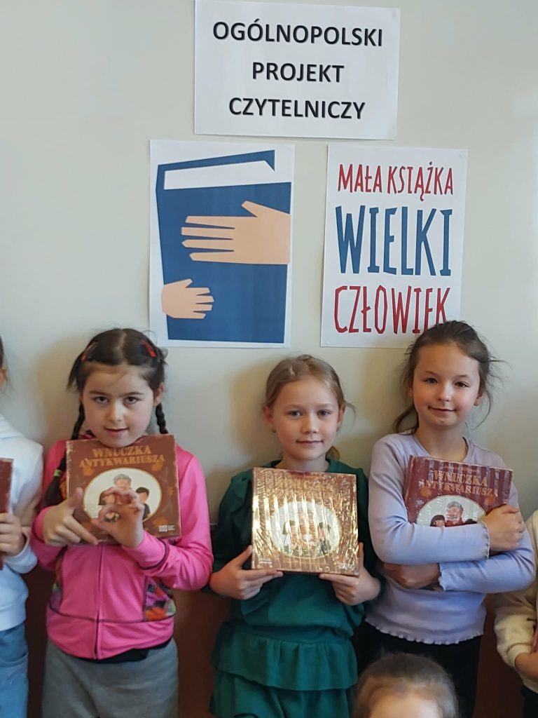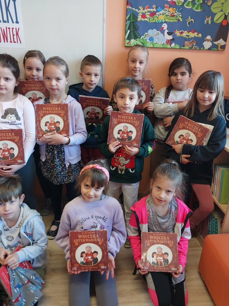 Podczas spotkania uczniowie przypomnieli sobie litery, poznali słowa: biblioteka, księgarnia, antykwariat oraz budowę książki. Pierwszoklasiści otrzymali książkę Justyny Bednarek ,,Wnuczka antykwariusza” z załączoną broszurą dla rodzica i dziecka ,,Kochasz? Czytaj razem z dzieckiem’’. Projekt realizowany jest ze środków Ministerstwa Kultury i Dziedzictwa Narodowego.