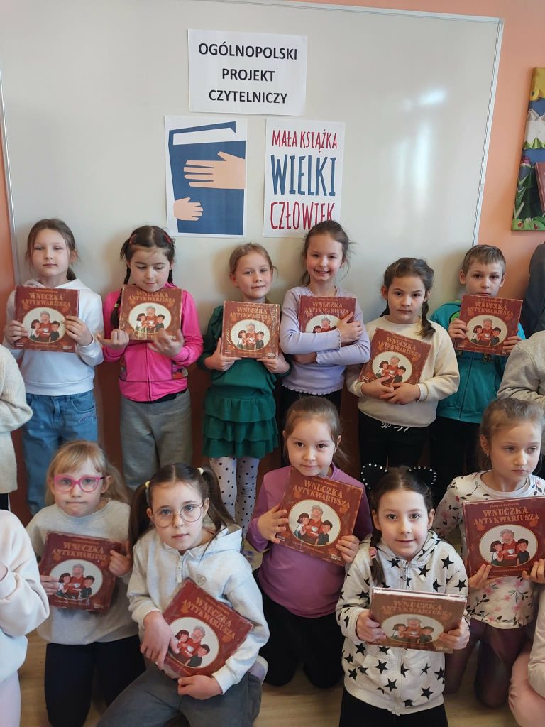 9 marca 2026 roku uczniowie klas pierwszych uczestniczyli w lekcji bibliotecznej w ramach kampanii „Mała książka – wielki człowiek”. Głównym była promocja czytelnictwa wśród dzieci, zachęcanie do częstego sięgania po książki i regularnego czytania.