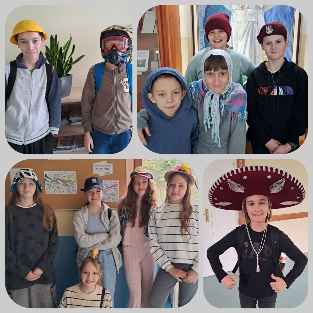 Dużym zainteresowaniem cieszył się także Dzień Nakrycia Głowy. Kreatywność uczniów nie miała granic – od eleganckich kapeluszy, przez czapki sportowe, aż po zabawne i nietypowe konstrukcje.