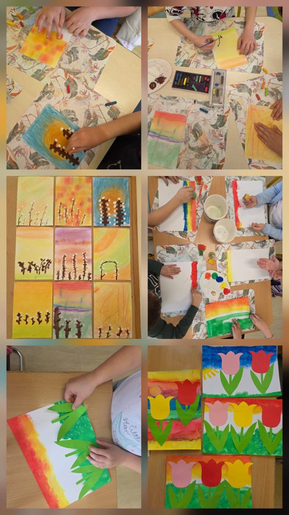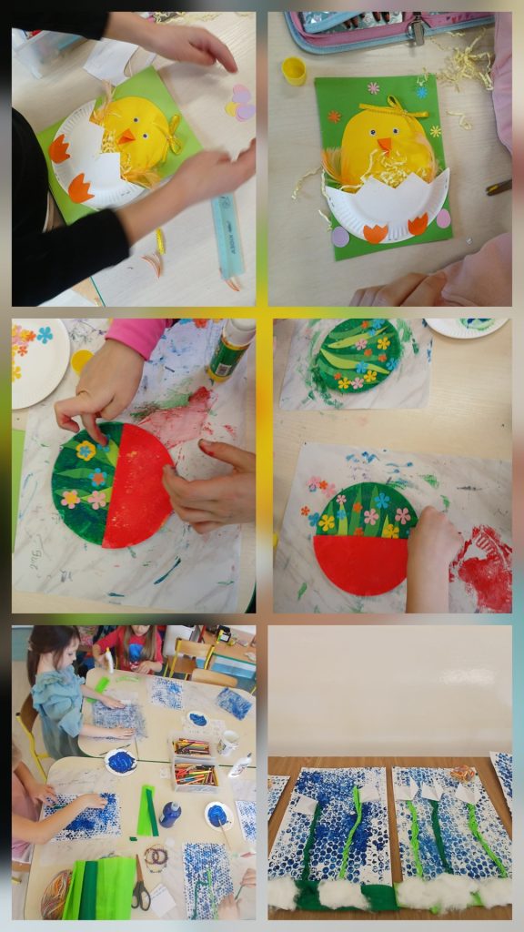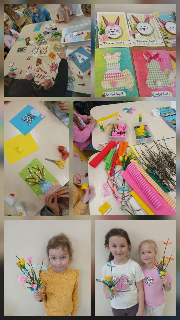 W ostatnich tygodniach z okazji zbliżającej się wiosny w naszej świetlicy szkolnej zrobiło się wyjątkowo kolorowo, wiosennie i świątecznie. Uczniowie z ogromnym zaangażowaniem tworzyli prace plastyczne inspirowane budzącą się do życia przyrodą oraz nadchodzącą Wielkanocą.