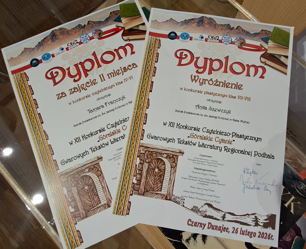 Praca naszych uczennic – Tamary Franczyk z kl. 5a i Anity Szewczyk z kl. 7a – w konkursie wojewódzkim została nagrodzona 16 kwietnia br. podczas gali w Instytucie Dziedzictwa Niematerialnego Ludów Karpackich w Ludźmierzu.