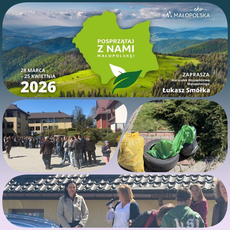 W dniu 23 kwietnia 2026 r. uczniowie naszej szkoły wzięli udział w wojewódzkiej akcji ekologicznej „Posprzątaj z nami Małopolskę 2026” objętej patronatem Marszałka Województwa Małopolskiego.