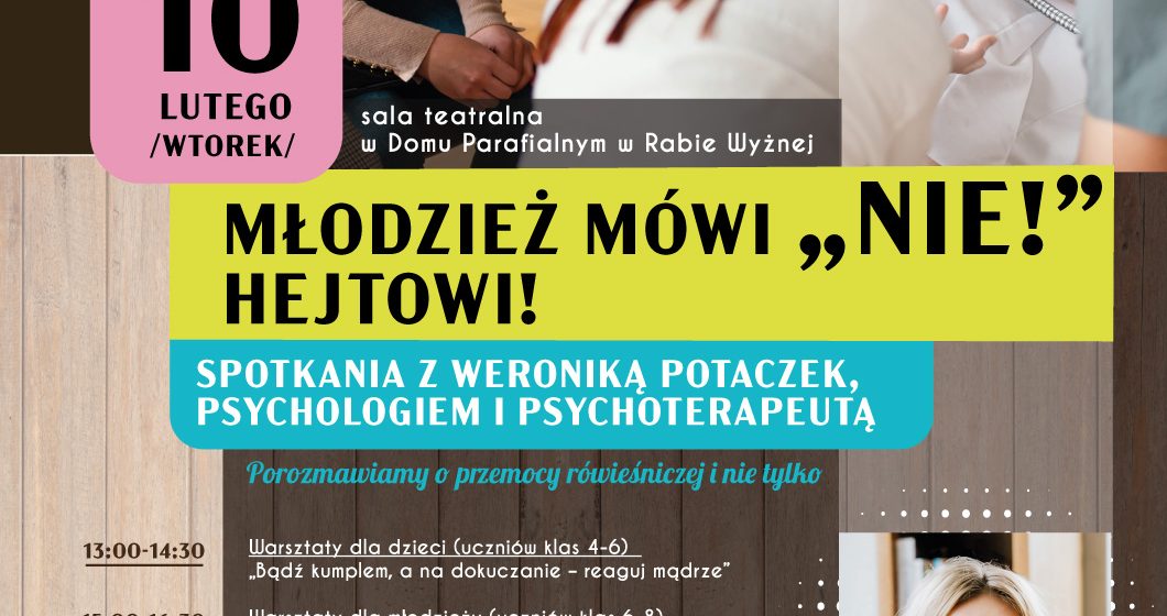 Hejt nie zawsze krzyczy. Często żartuje, wyklucza, „dla śmiechu” przekracza granice. Dlatego 10 lutego (wtorek) zapraszamy dzieci, młodzież i rodziców na cykl bezpłatnych, merytorycznych spotkań poświęconych przemocy rówieśniczej – tej widocznej i tej ukrytej. Spotkania poprowadzi Weronika Potaczek – psycholog i psychoterapeuta, pracująca na co dzień z dziećmi, młodzieżą […]